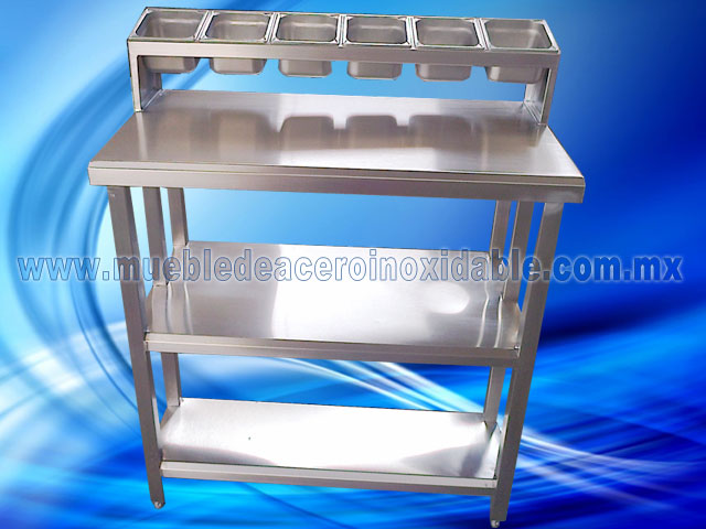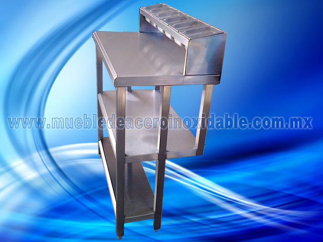 Material de Apoyo de Acero InoxidableLe ofrecemos el mejor complemento de apoyo en materiales de acero inoxidable: Repisas de trabajo, Anaqueles Barras y Carros de servicio y Carros de laboratorio Estructura con entrepaño para parrillas desmontables Campanas de cocinas Rejillas, cubiertas y más!
