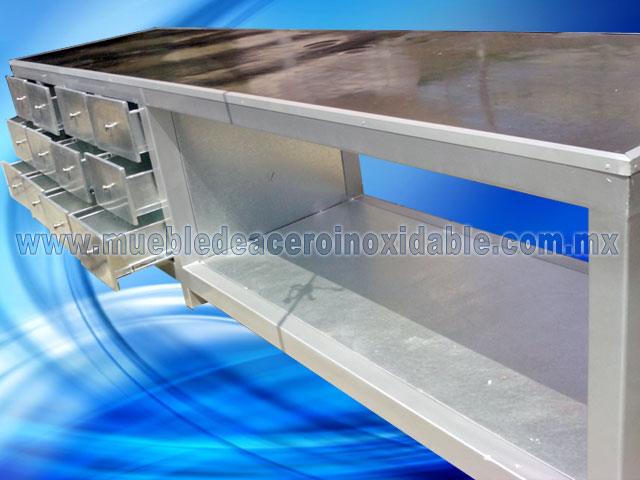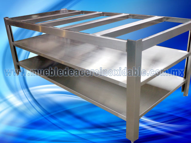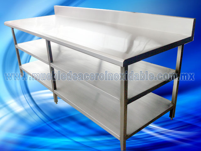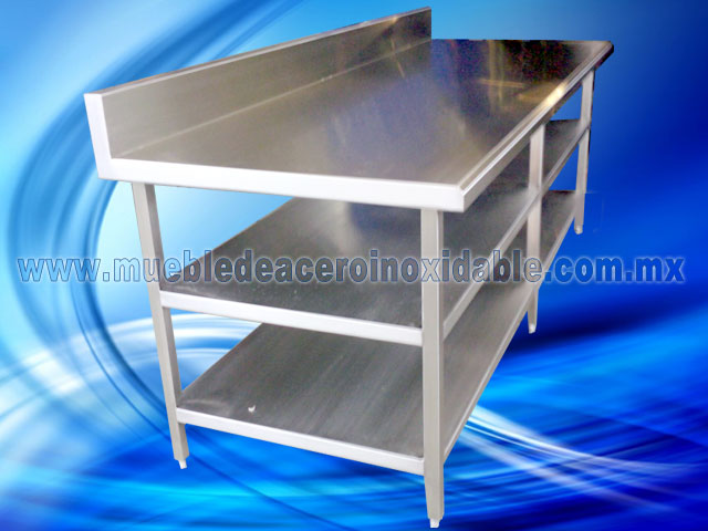 Mesas de Acero InoxidableMesas hechas de acero inoxidable de la mejor calidad Mesa a pared con entrepaños Mesa en isla para comensales Mesa para amasijo Mesa de carga con cajonera para usos múltiples Mesa de apoyo con incertos Mesa lambrin con entrepaño.